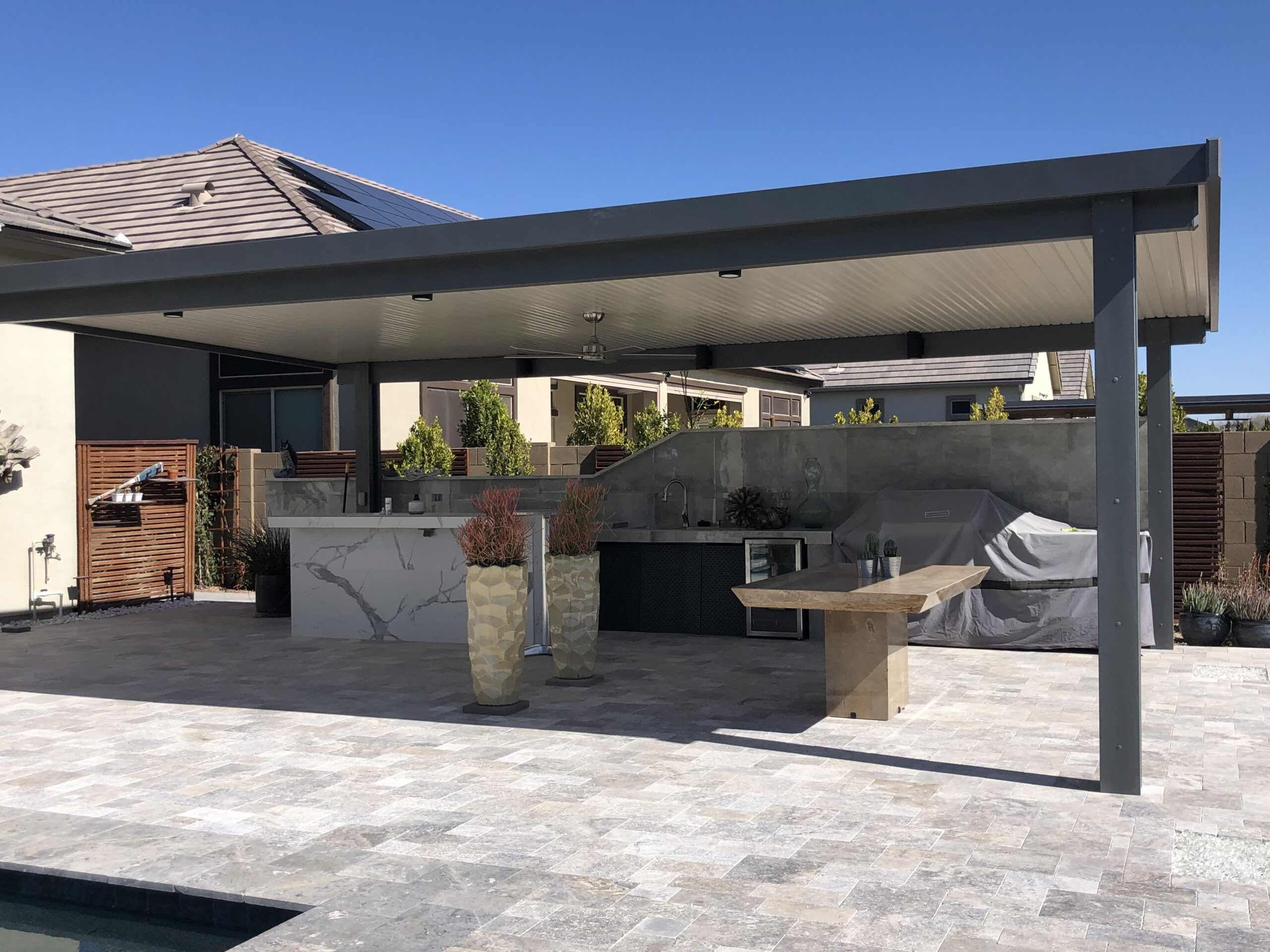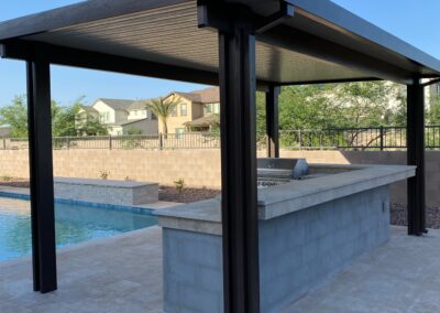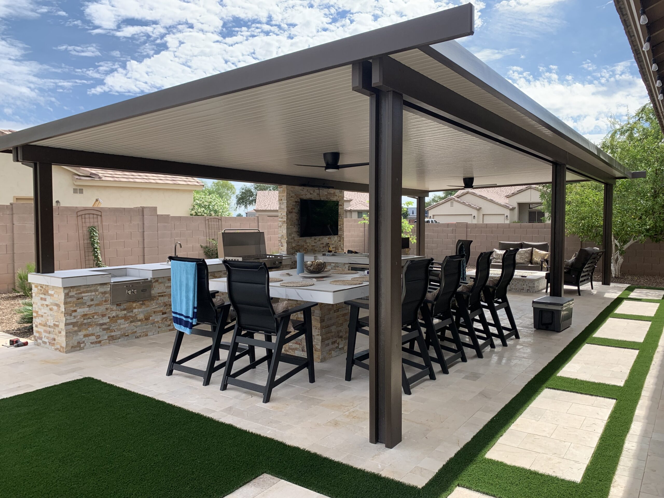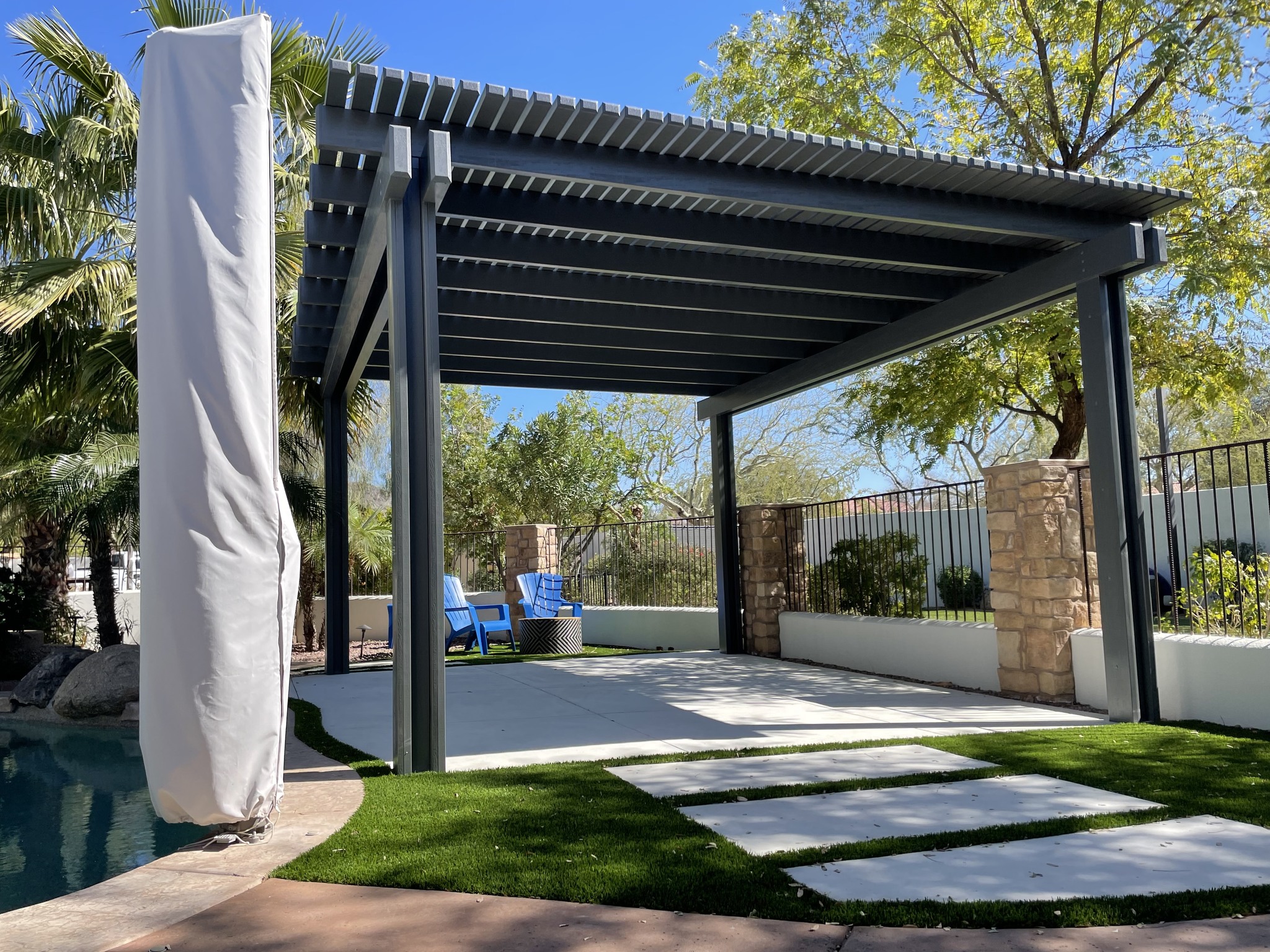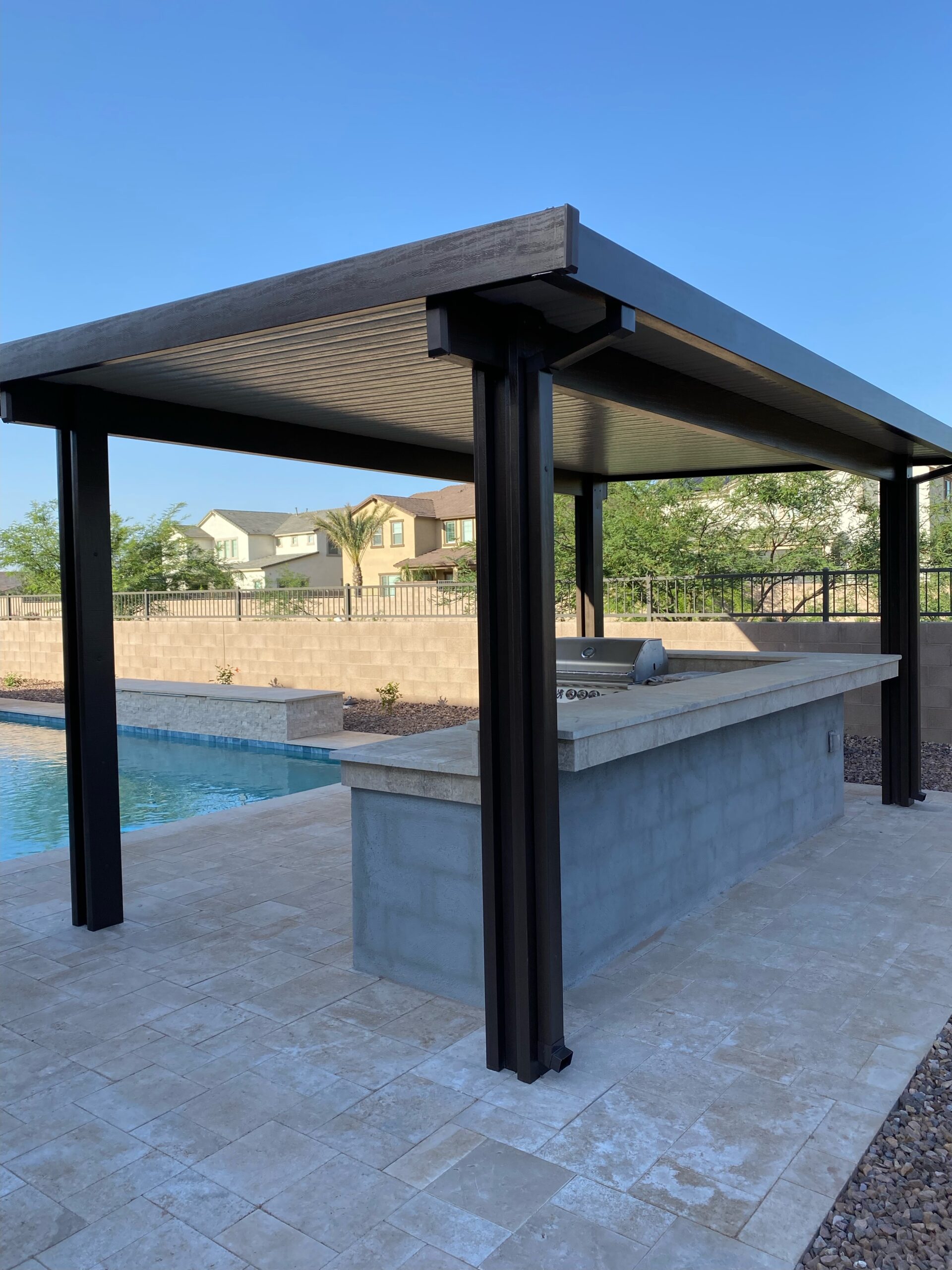Project Description: Royal Covers built this Alumawood pergola with over an outdoor grill island in the Phoenix, Arizona area.