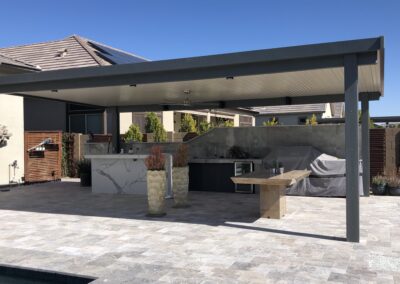 Cantilever Alumawood Lattice Pergola Over Outdoor Kitchen BBQ