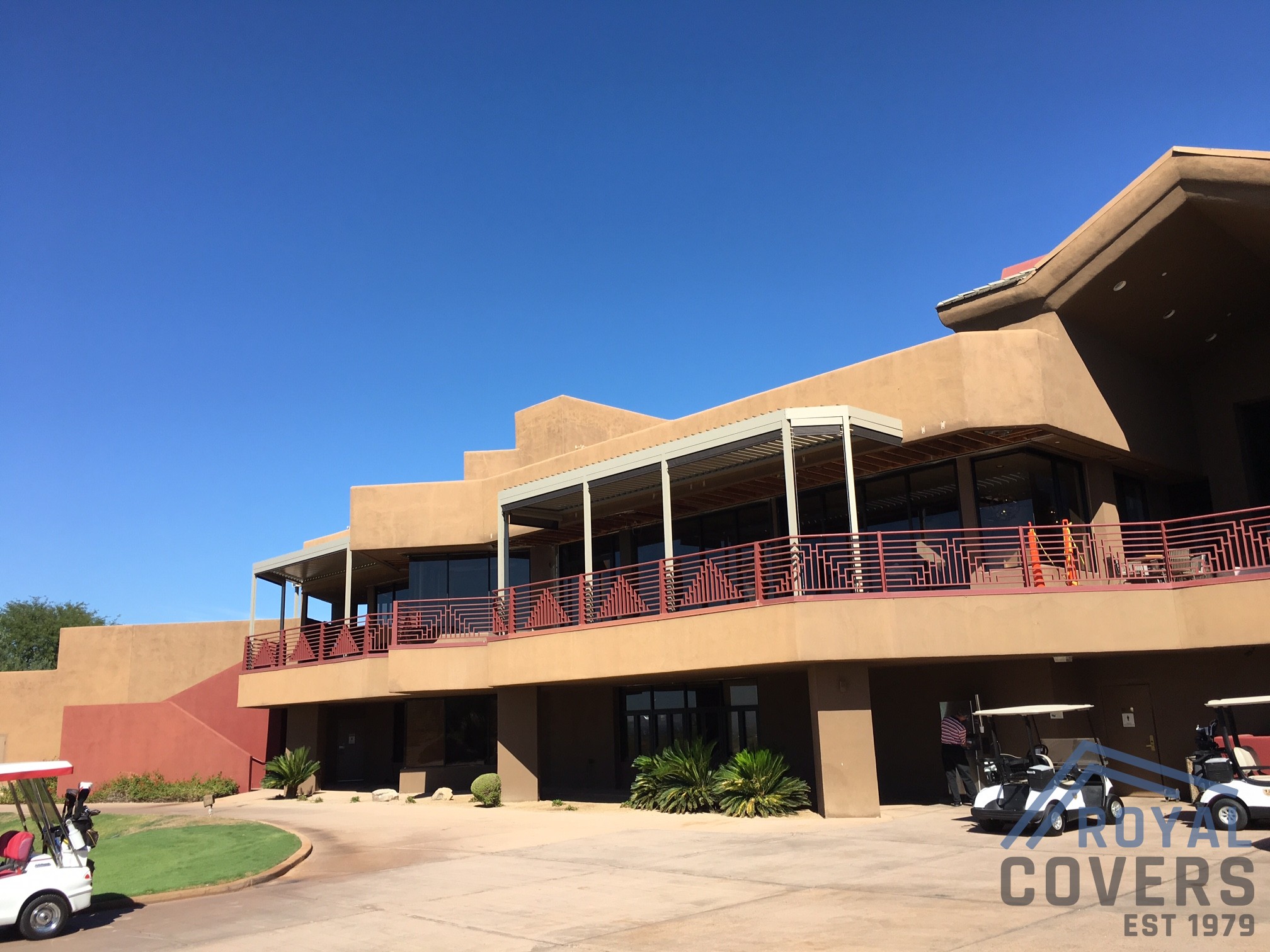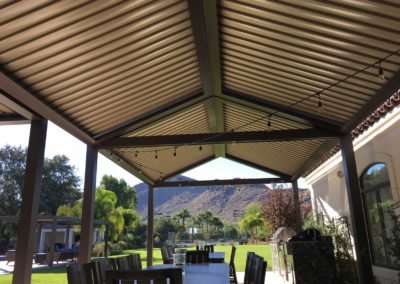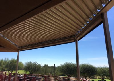 Project Description: Royal Covers built this commercial Alumawood shade structure to provide shade for the outdoor community clubhouse seating area in the Phoenix, Arizona area.