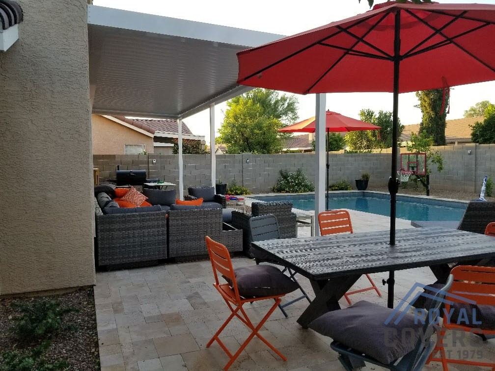 Project Description: Royal Covers built this Alumawood solid patio cover to extend the home's existing patio space in the Phoenix, Arizona area.