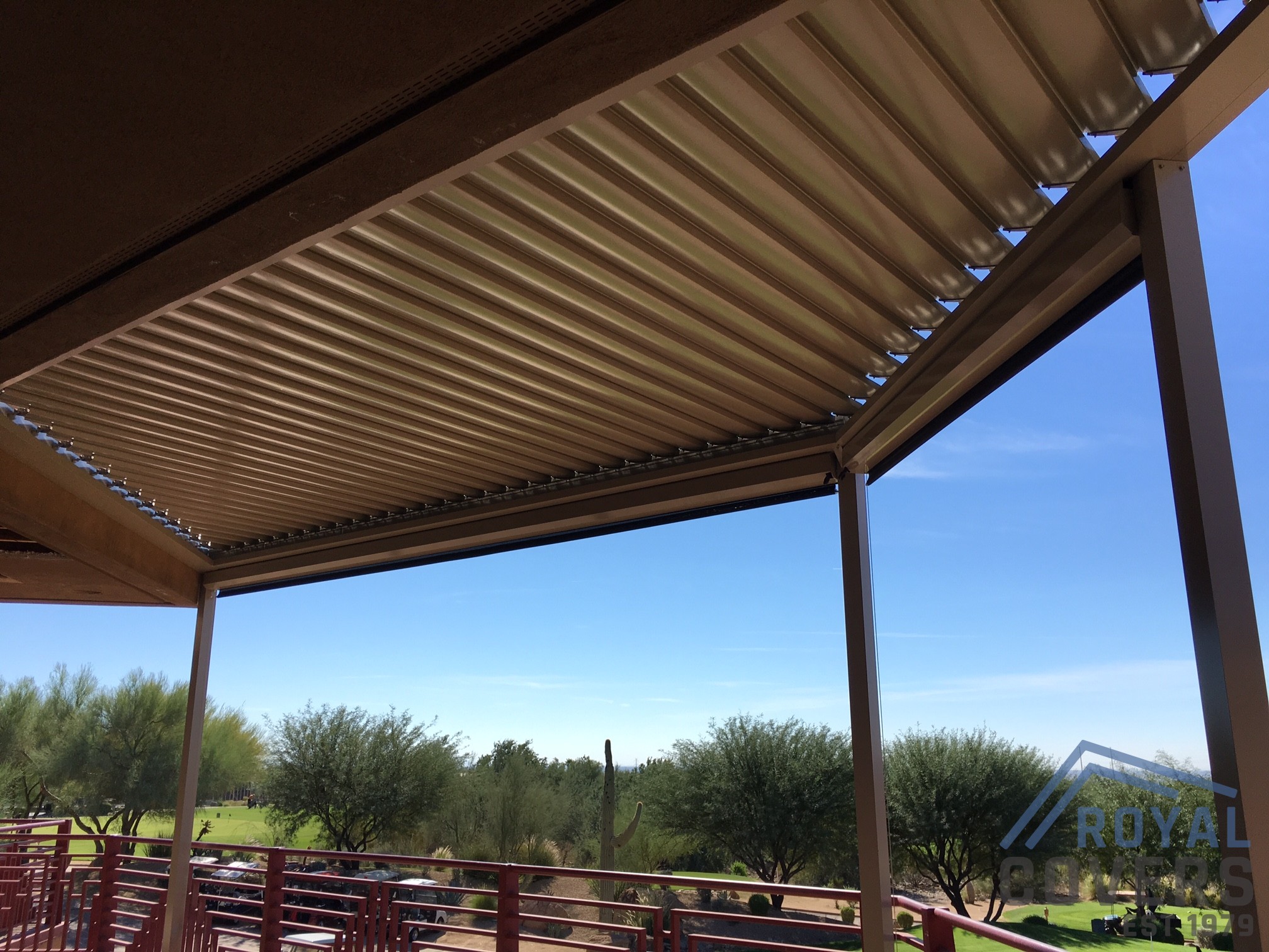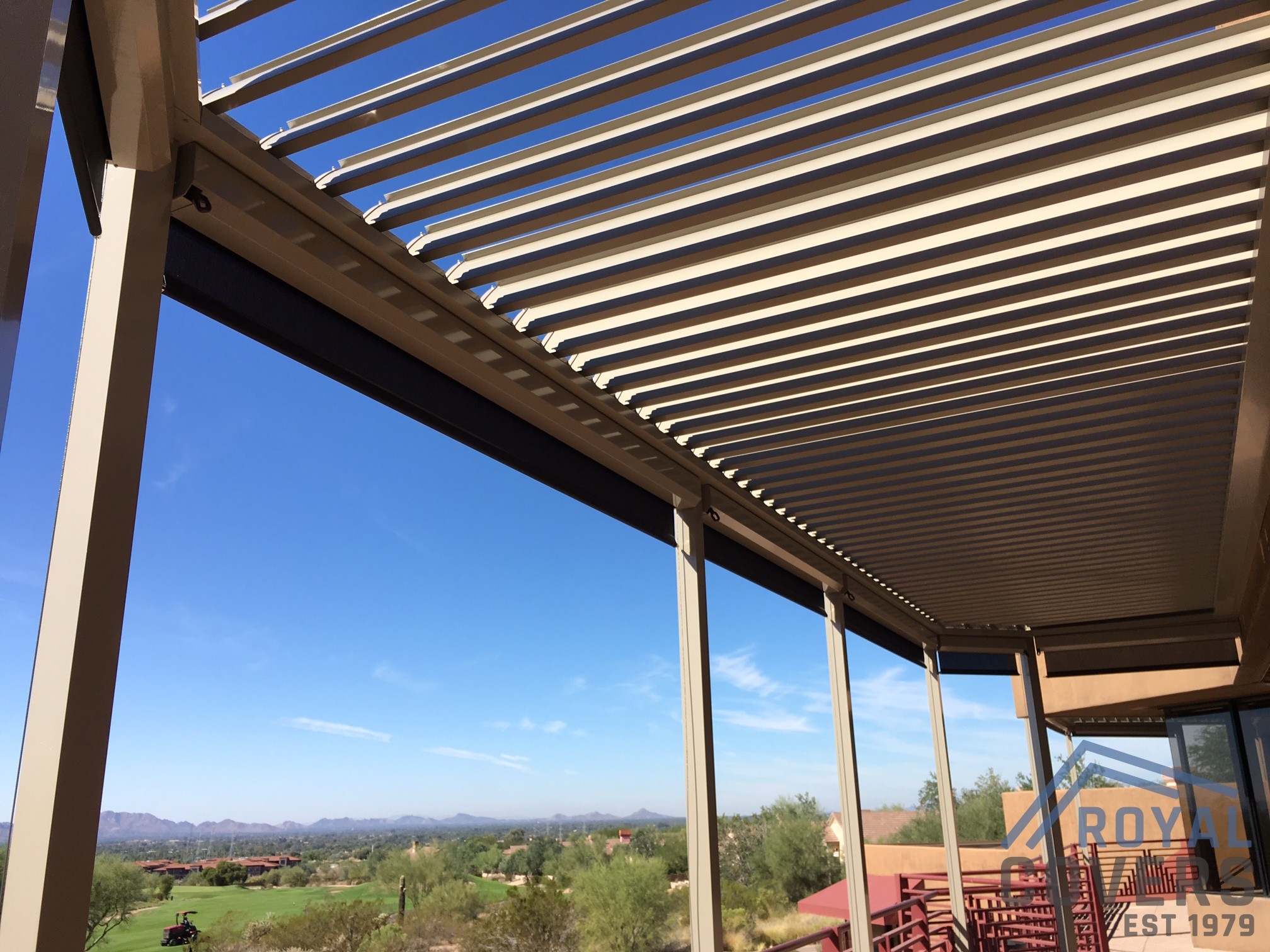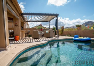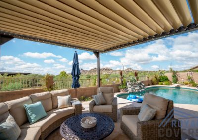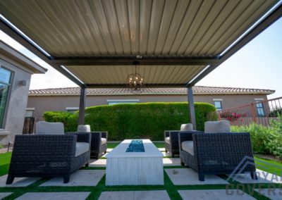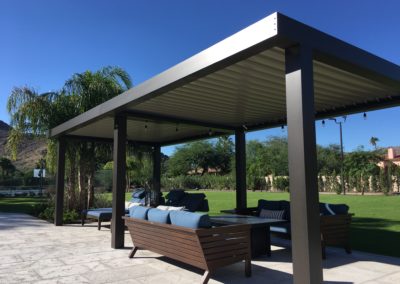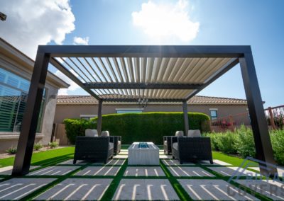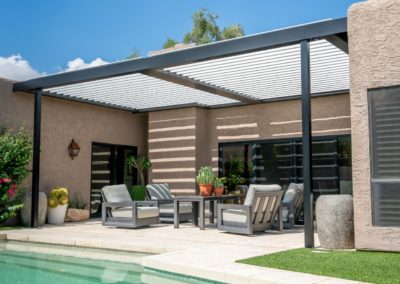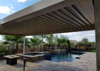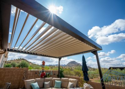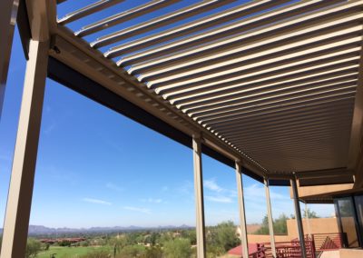 The Equinox louvered roof system is made of heavy gauge extruded aluminum with a super polyester TGIC powder coating paint finish. The aluminum components are durable and hold up well in the Arizona weather.